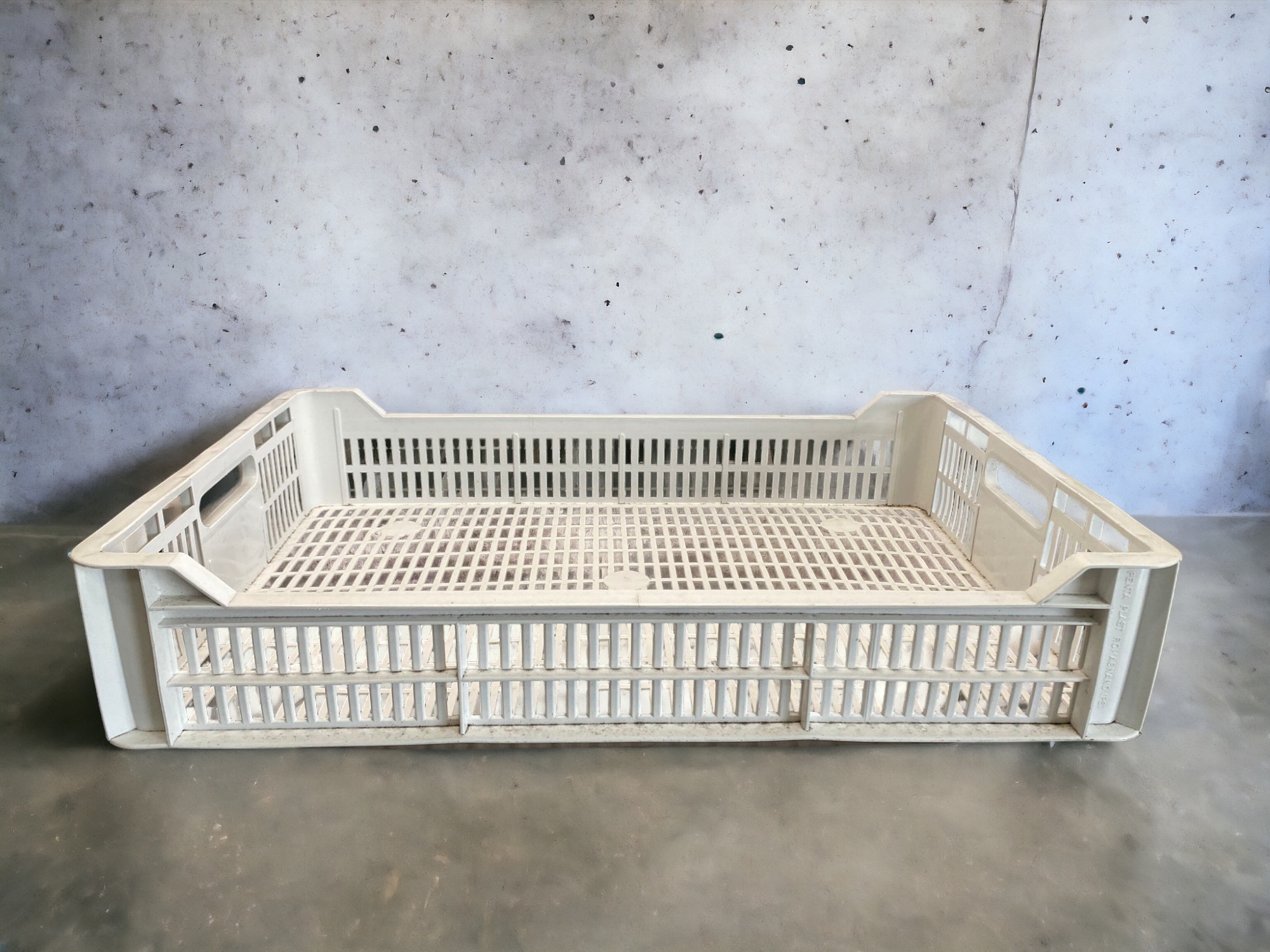 White perforated stackable drying trays. Some are brand new, some have had light use and require a wipe down.